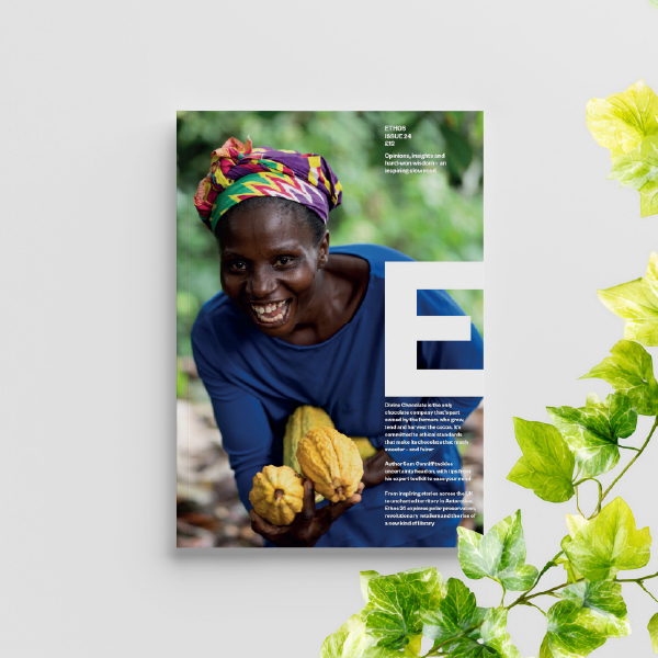 Our cover stars are Divine Chocolate – the only chocolate company in the world part-owned by the farmers who grow its cocoa. We travel to Antarctica with one of 11 young scholars selected to explore the Ross Sea. We visit Utrecht’s remarkable Spectacle of Books, Oslo’s most famous chair designer and a national park in Mozambique that’s become Africa’s greatest restoration project.
